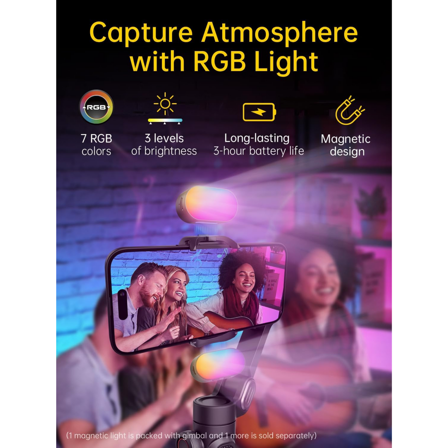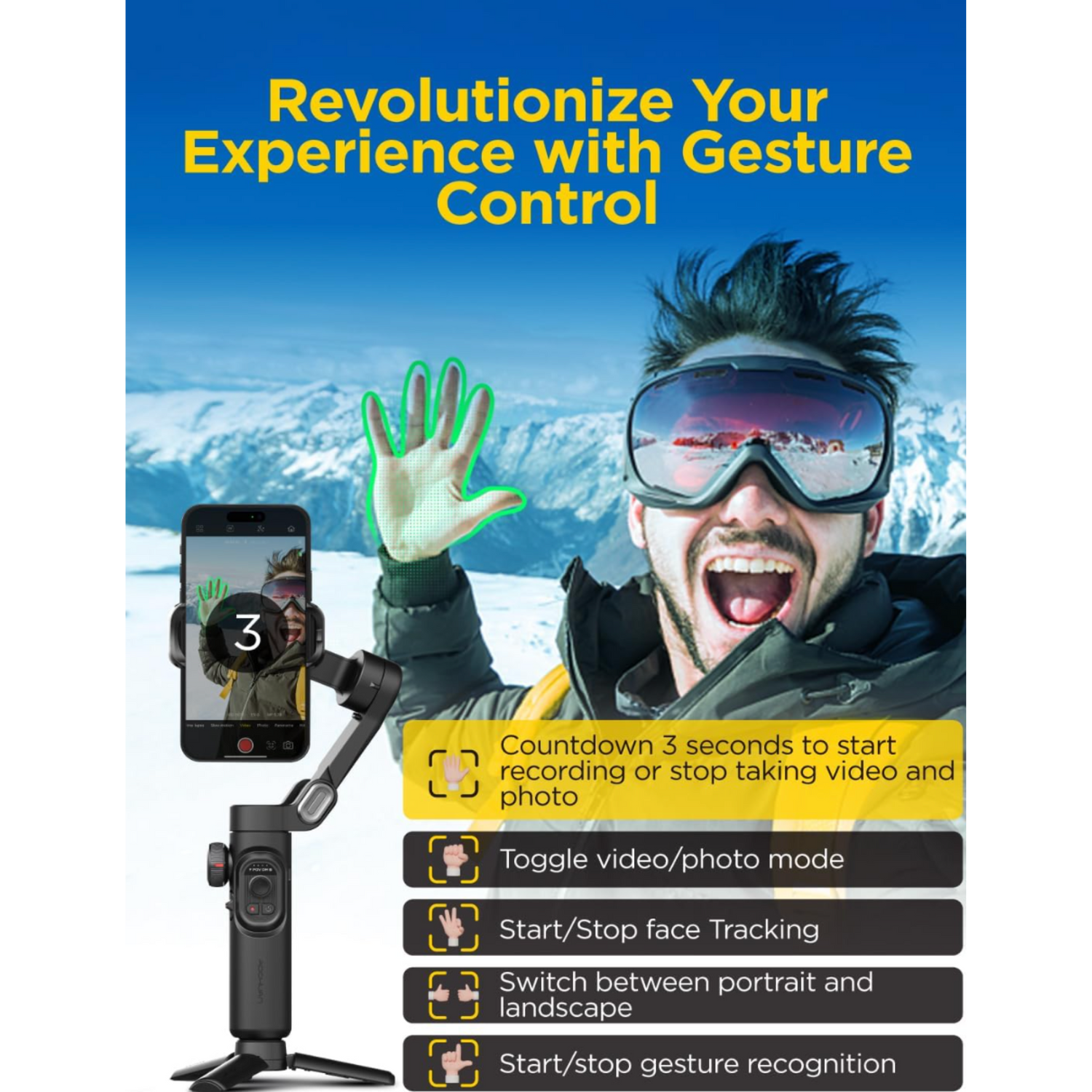 The StablePro™ gimbal stabilizer transforms shaky footage into smooth, polished videos. It's simple to set up, making it perfect for all skill levels. With intelligent tracking and an energy-efficient design, it keeps your smartphone secure while you create stunning content. Enjoy extended shooting sessions with its robust battery life.